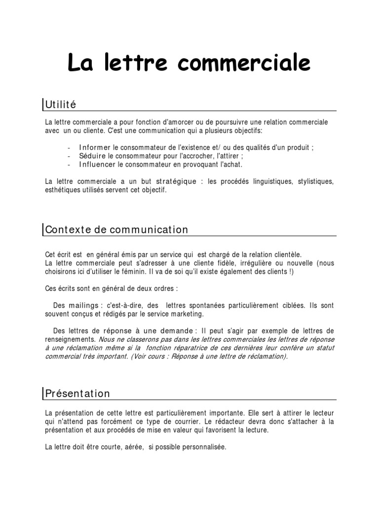 Pdf Support De Cours Lettre Commerciale Francais Cours Commerce