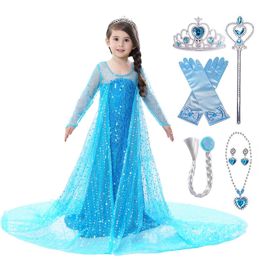 New Dress For Girls Clothing Princess Set Christmas Cosplay Christmas Birthday Party Sky Blue Princess Dress 4 10 Years Old Dresses Aliexpress