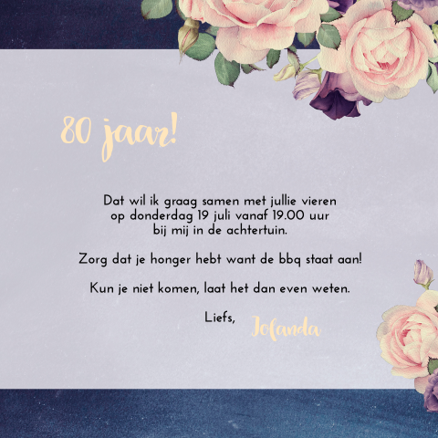 Romantiche verjaardag uitnodiging 80 jaar vrouw
