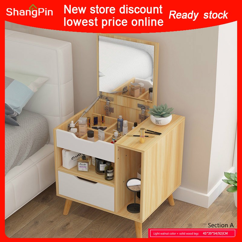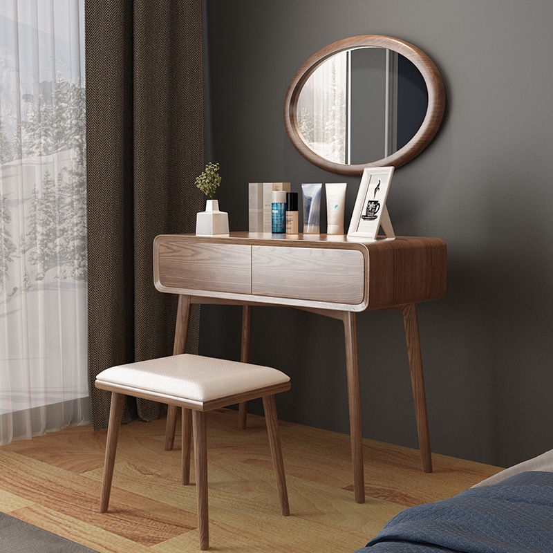 Nordic Solid Wood Dressing Table Bedroom Simple Modern Small Mini Storage Square Mirror Makeup Table Ins Makeup Table Shopee Singapore